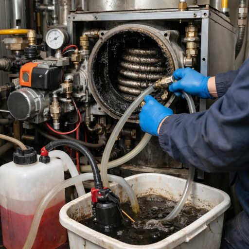 Промывка котельной существенно отличается от работ в частном доме за счёт масштабов и количества контуров. Здесь нужны промышленные установки, согласование с диспетчерскими службами и тщательная документация.