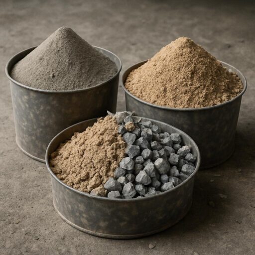 Песок определяет удобоукладываемость и плотность смеси. Натуральный речной песок мягче и чище. Дроблёный песок даёт лучшую сцепляемость с цементом. Контроль по ситовому составу обязателен. Слишком мелкий материал повышает водопотребность смеси.