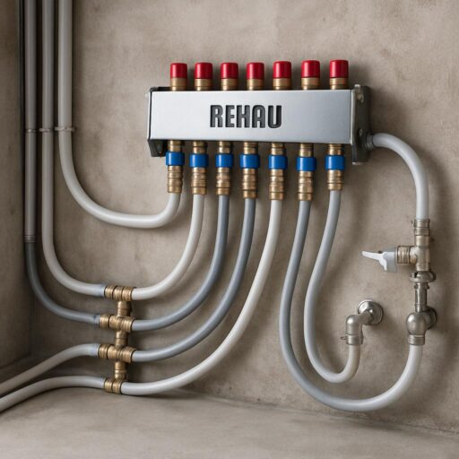 Главное преимущество — гибкость системы. Трубы Rehau можно укладывать как под землёй, так и внутри стен. Они легко гнутся без риска повреждений, что упрощает обход препятствий в помещении. При этом соединения выполняются без сварки, что снижает возможность протечек и сокращает время монтажа.