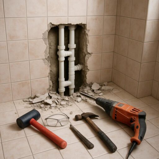 Когда приступаешь к ремонту труб, особенно теми, что спрятаны под плиткой, каждый инструмент должен быть на своём месте. Нечего бессистемно рыться в ящиках в поисках нужного сверла или подходящего герметика — работа пойдёт легче, если собрать всё заранее и сразу. В отличие от поверхностного ремонта, здесь нужно всё сделать аккуратно и максимально эффективно.