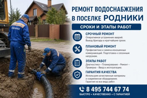 Ремонт водоснабжения в поселке Родники — это не только вопрос комфорта жителей, но и гарантия здоровья, безопасности и устойчивого развития всей территории. Негерметичные сети, изношенные трубы и устаревшие узлы учета приводят к потерям воды, перебоям в подаче и повышенным расходам. Поэтому грамотное планирование работ и реалистичные сроки их выполнения критически важны для минимизации неудобств и экономических потерь.