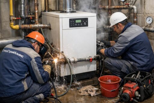 Экстренный ремонт труб котельной — задача, которую нельзя откладывать. Протечки, разрыв труб, падение давления и потеря циркуляции приводят к быстрому отключению напольного котла, риску размораживания систем, повреждению оборудования и капитальным потерям для здания и потребителей тепла. Быстрая и скоординированная реакция персонала снижает ущерб и возвращает систему в рабочее состояние. Правильный порядок действий при аварии прост