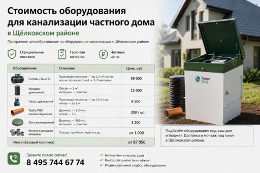 Стоимость оборудования для канализации частного дома в Щёлковском районе. Выбор и стоимость оборудования для канализации частного дома в Щёлковском районе — важный этап при проектировании и строительстве автономной системы. От правильного подбора зависит долговечность, экологичность и удобство эксплуатации; ориентировочные затраты лучше закладывать заранее, чтобы избежать перерасхода бюджета и задержек в работах.