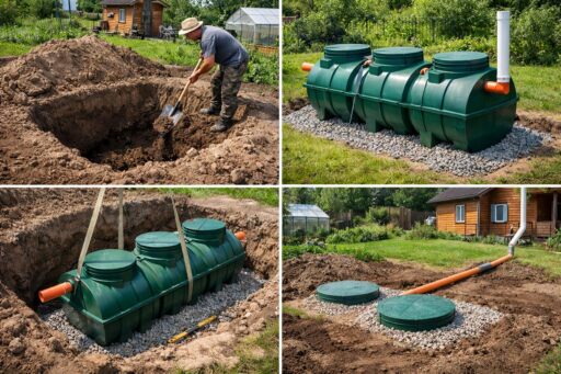 Установка требует соблюдения правил: правильный расчет объема, разметка котлована, подготовка основания, герметизация швов, уклон труб, вентиляция и защита от всплывания при высоком уровне воды. Необходима проверка и согласование с местными санитарными нормами и требованиями экологии, а в некоторых случаях — получение разрешений. Безопасность при работе с землей и техникой, а также грамотная прокладка труб исключат проблемы в будущем.