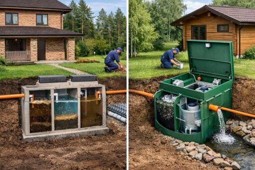 В этой статье рассматриваются два распространённых подхода к автономной канализации для загородного дома: септик с системой биологической очистки и герметическая накопительная ёмкость с периодическим вывозом стоков. Первый вариант предусматривает локальную очистку и минимизацию вывоза, второй — простоту конструкции и более низкие первоначальные затраты при редком использовании.