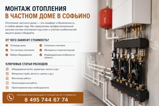 Стоимость монтажа отопления в частном доме в Софьино: от чего зависит цена. Монтаж системы отопления в частном доме в Софьино — одно из ключевых вложений в комфорт и безопасность жилья. На первый взгляд стоимость работ может показаться запутанной: разные подрядчики называют разные суммы, а у соседей — совершенно иной набор оборудования. Тем не менее цена всегда формируется из конкретных факторов, и понимание этих составляющих поможет планировать бюджет без лишних переплат.