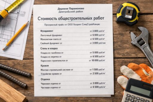 Стоимость общестроительных работ в Д. Парамоново (Дмитровский район): прайс и ориентиры. Вступление к заметке о стоимости общестроительных работ в д. Парамоново (Дмитровский район) призвано дать читателю быстрое ориентирование: какие виды работ входят в общестроительный комплекс, какие факторы формируют цену и на что стоит обращать внимание при составлении сметы или выборе подрядчика. Для владельцев участков и домовладельцев в пригородной зоне Дмитровского района такая информация особенно актуальна — здесь сочетаются близость к Москве и свои местные особенности, которые напрямую влияют на стоимость строительства и ремонта.