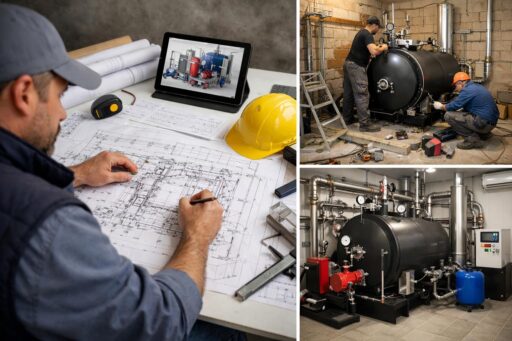 Правильный проект — ключ к безаварийной и экономичной работе: он включает теплотехнические расчеты нагрузки, выбор типа и мощности котла, подбор топливной системы, систему подготовки и очистки воды, размещение насосного оборудования, систему отвода конденсата и дымоходов, а также автоматику и устройства безопасности. На этапе строительства важно предусмотреть фундамент, вентиляцию, огнезащитные меры и удобный доступ для обслуживания.