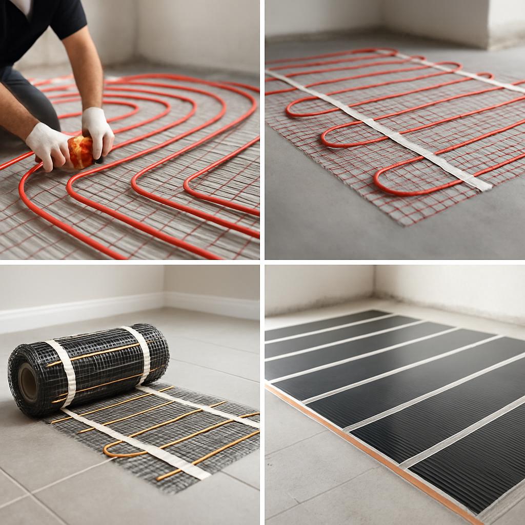 | Электрический мат | Заранее собранные нагревательные элементы | Быстрая установка, подходит для малого ремонта | Ламинат, паркет, плитка |
