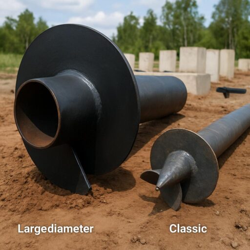 Ключевое отличие от классических свай заключается в механике восприятия нагрузки. У обычной буронабивной сваи основная часть усилия воспринимается за счёт концевого упора и трения по поверхности бетона; у большой винтовой сваи роль упора заметно усиливается за счёт большой площади геликса. Это даёт более предсказуемую жёсткость фундамента и меньшую осадку при одинаковой нагрузке, особенно в слабых или пологих грунтах.