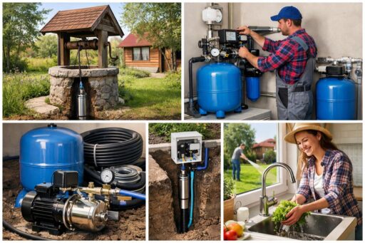 Водоснабжение дачи из колодца: выбор оборудования и монтаж. Надёжное водоснабжение дачи из колодца — залог комфортного отдыха и эффективной работы в саду. Правильно подобранное оборудование и грамотный монтаж обеспечивают постоянное давление в системе, чистую воду без посторонних примесей и длительную беспроблемную эксплуатацию при минимальном обслуживании. Первый шаг — оценка колодца: глубина, дебит и качество воды