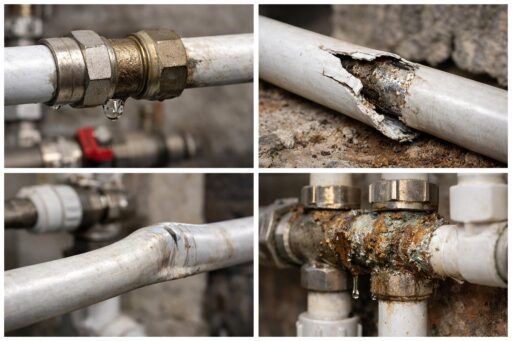 На практике это выражается в постепенной потере жесткости стенки и ослаблении уплотнений. Фитинги утрачивают герметичность, особенно у котлов и насосных групп. Такие дефекты могут проявляться сначала мелкими подтёками, затем переходить в аварийные разрывы. Раннее обнаружение критично для сокращения расходов и сохранения отделки.