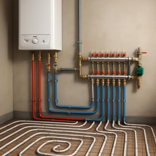 В статье подробно рассматриваются устройство системы, ключевые узлы и принцип работы: котёл и его типы (конденсационный и традиционный), коллекторные группы, насосы, смесительные узлы, расширительные баки и используемые трубные материалы. Отдельное внимание уделено особенностям согласования температуры подачи с возможностями газового котла, обеспечению гидравлической балансировки и безопасности при эксплуатации.