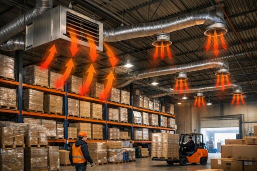 Преимущества воздушных систем отопления склада — быстрое тепло и экономия затрат