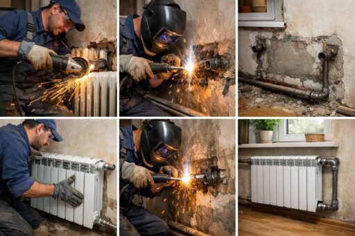 План действий должен быть простым и последовательным. Сначала проводят визуальную оценку и замеры температуры на радиаторе. Затем делают опрессовку системы для выявления скрытых протечек. После этого принимают решение: чистка, ремонт фитингов или полная замена батареи с сваркой. При выборе сварки учитывают материал труб и доступ к стояку.