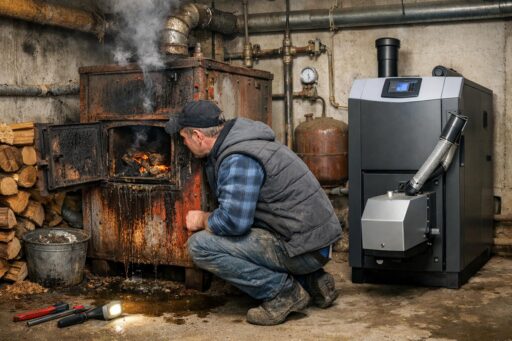 На что менять: выбор зависит от приоритетов — экономии, удобства или экологии. Основные варианты: современные дровяные котлы газификации (более высокий КПД), пеллетные котлы с автоматической подачей, конденсационные газовые котлы (если есть газ), электрические котлы (простая установка, но выше счета), тепловые насосы (воздух/вода или геотермальные) для максимальной экономии в долгосроке и гибридные схемы. У каждой опции есть свои требования к месту, дымоходу, хранению топлива и уровню обслуживания.